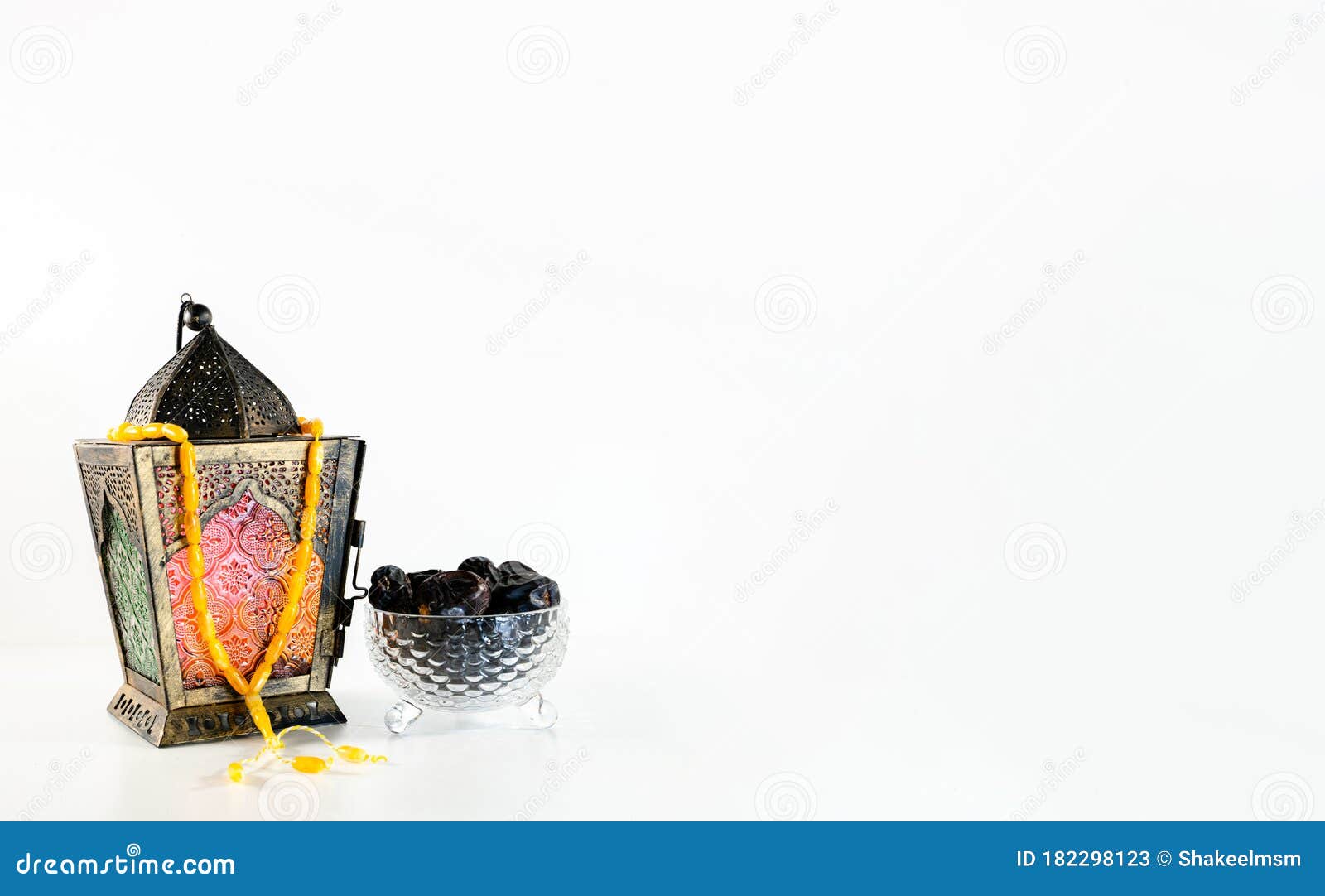 Background Image With White Background With Arabic Lantern Dates And Beads Stock Image Image Of Faith Lantern 182298123