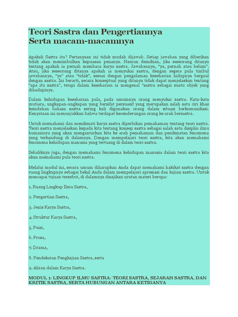 Teori Sastra Dan Pengertiannya Serta Pdf